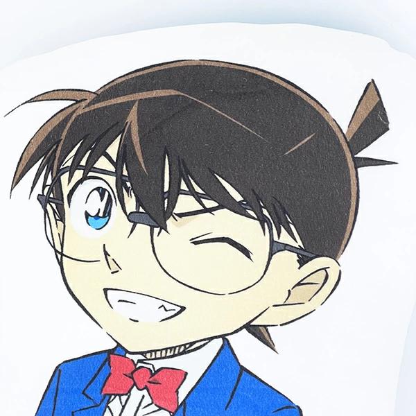 名探偵コナンから、江戸川コナンくんのダイカットクッションです。ニカっと笑うお茶目なコナン君と裏側はブルーの鮮やかデザイン! モチモチ触感でとても気持ちいい触り心地♪ ソファーに飾るのはもちろん、ぎゅっとしながら眠ると難事件の夢が見れるかも・・・?