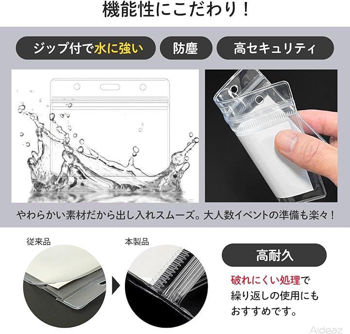 「機能性にこだわり、ジップ付で水に強く・防塵・高セキュリティ」素材は機能性と透明度を兼ね備えたPVCを採用、視認性に優れ軽量で柔らかい素材なのでチャックの開閉・中身の出し入れがしやすくなりました。