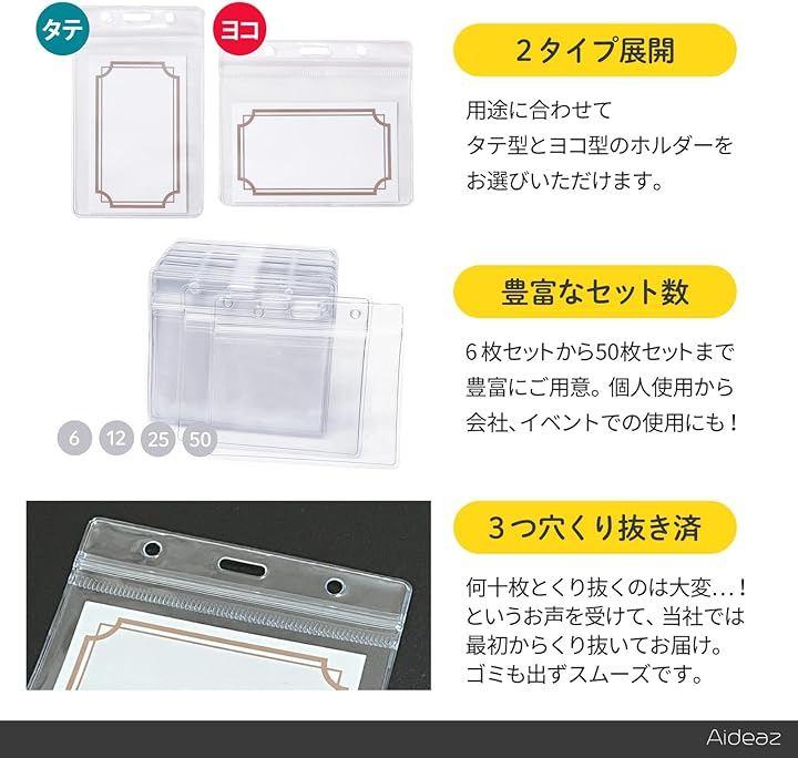 「使い方は様々、届いてすぐに使える3つ穴タイプ・中紙付き」ホルダーは3つ穴タイプでくり抜き済み、お手持ちのストラップやリールクリップ、紐などを装着してゴミを出す心配なく届いてすぐにお使いいただけます。
