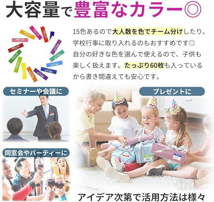 15色のカラフルな名前ラベル」 イベントやパーティの他、ビジネスでの会議、セミナー、同窓会など様々なシーンでお使い頂けます。
