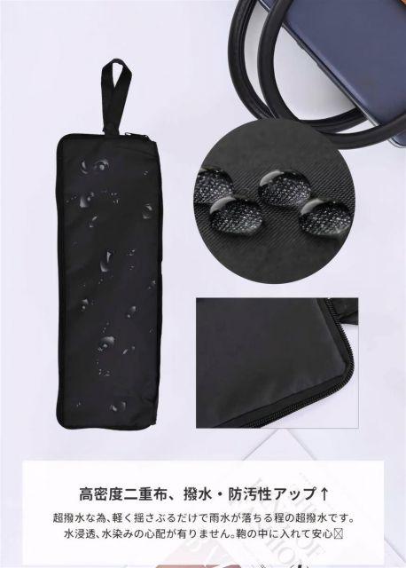 説明濡れない超撥水傘カーパ:傘カーパは高密度二重布素材を採用して、ポリエステル加工を加えることで、撥水性と防汚性を兼ね備えたおりたたみ傘カーパです。そのうえ、吸水性と撥水性を兼ね、カーパに傘を収納しておけば安心して鞄の中に入れておけます