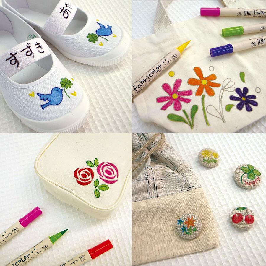 上靴やおけいこバッグ、巾着ぶくろ、ポーチなどに名前やイラストが書けます。全30色の豊富なカラーバリエーションで、グラデーションの表現などもできます。オリジナルのデコレーションで、他の子と差をつけましょう♪