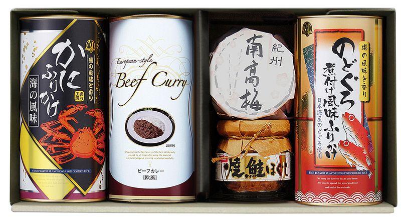 カニの繊細な旨味を吟味した素材で風味豊かに仕上げたふりかけとまろやかでコクのある本格的なビーフカレーなどを贅沢に詰め合わせたギフトです。
