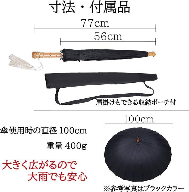 商品仕様 : ・親骨の長さ:約56cm ・収納時の長さ:約77cm ・使用時の直径:約100cm ・重さ:約400g ・UPF40(紫外線カット) ・収納ポーチ付き ・カラー:ブラック/ミルキーホワイト/グレー/レッド/グリーン/ピンク