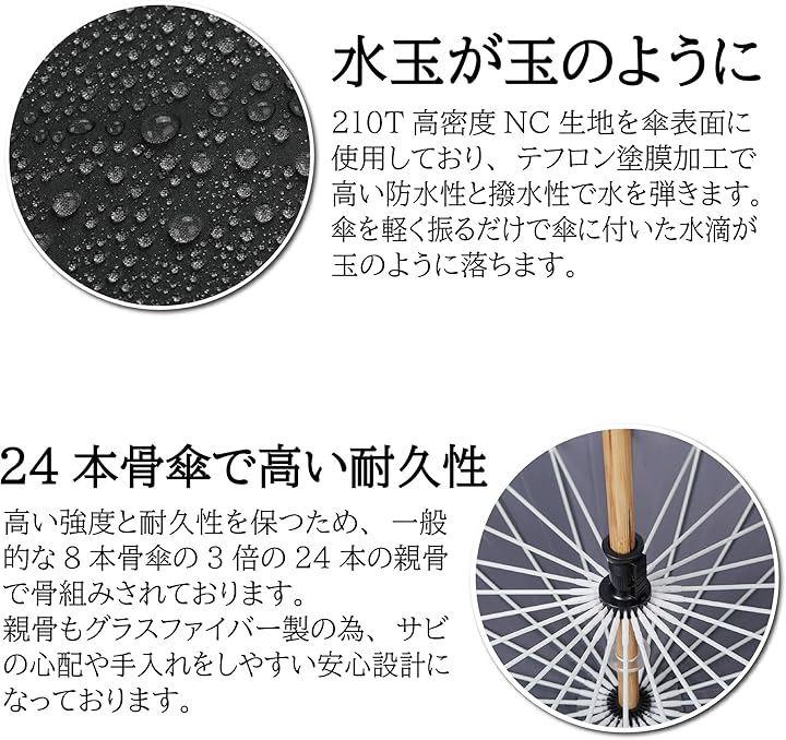 耐久性能 : 8本骨傘の約3倍にあたる24本のグラスファイバー製親骨を採用し、突然の豪雨や強風にも耐えられるよう設計。