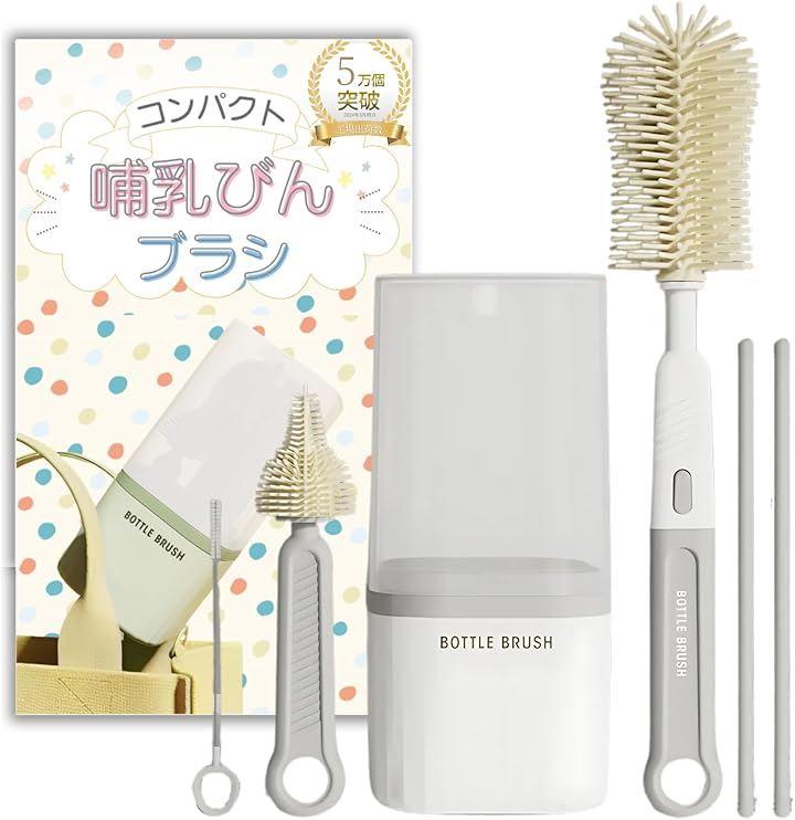 「4種類のブラシが1セットで幅広い用途に対応」 哺乳瓶やストローだけでなく、水筒やタンブラーにも使用可能な多機能設計。