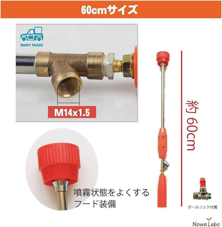「手元でオンオフ操作できるコック付き」 噴霧の開始・停止を手元で自在にコントロールできるコック付属しています。