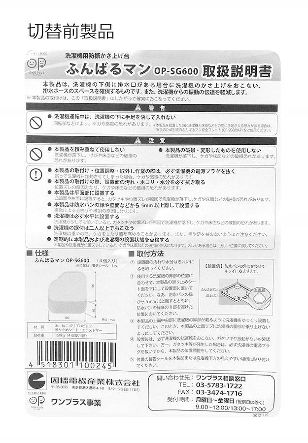3営業日以内に発送≪新品未開封品≫:因幡電工(INABA DENKO) 洗濯機用防振かさ上げ台 ふんばるマン OP-SG600 ホワイト