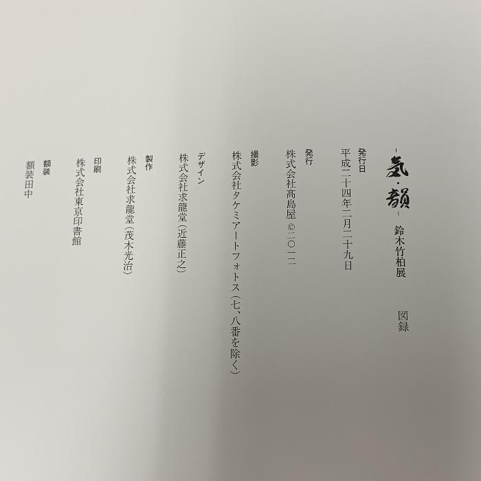 Catalog of Suzuki Chikuhaku Exhibition: Ki-Rin Takashimaya 2012