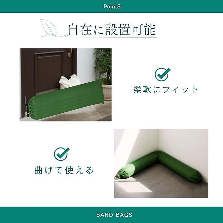 「柔軟性が高くさまざまな場所にフィット」 砂を入れても曲げやすい構造で、ドアの隙間や窓辺、庭の門や地下室の入口など不規則な場所にも柔軟に設置可能。