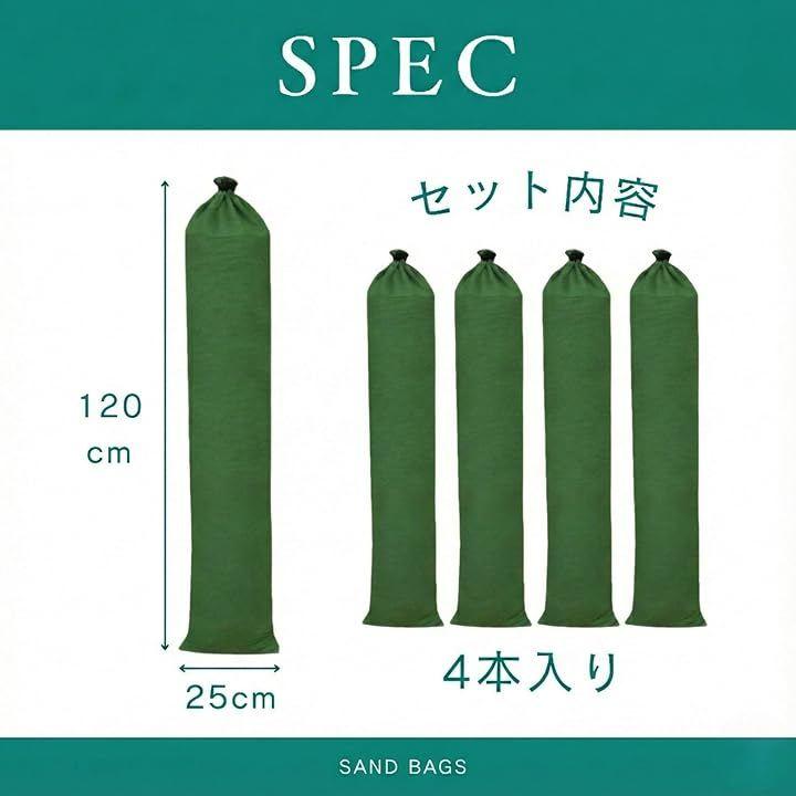 「豪雨や洪水に備える実用的な土嚢袋セット」 パッケージには4つの洪水用サンドバッグが付属。
