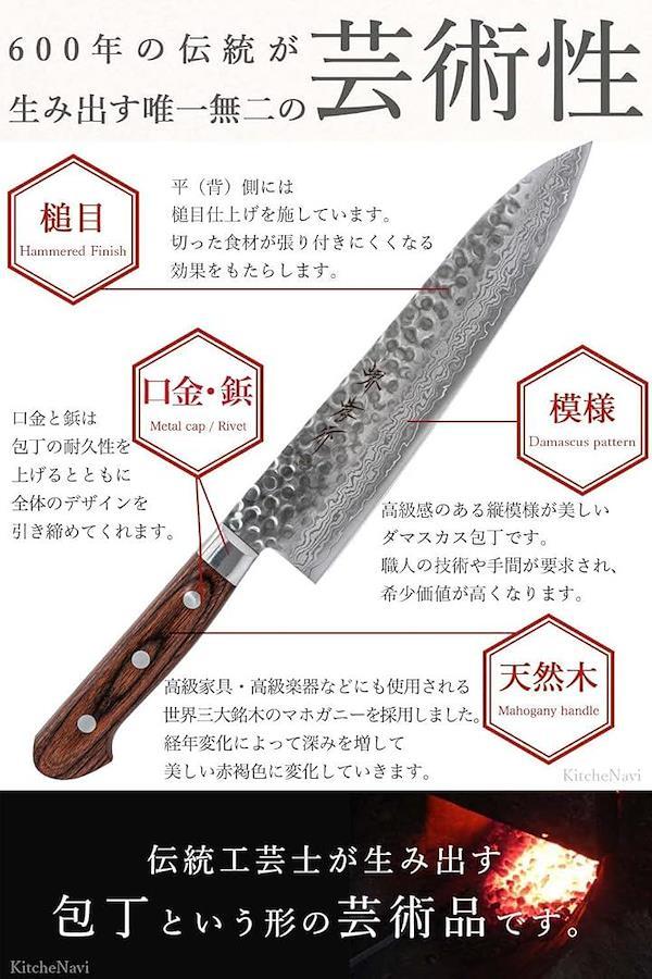 「サイズ・仕様」刃渡り:240mm、全長:367mm、刃幅:37mm、刃厚2mm、重さ:191g、刃材:ステンレスダマスカスV金10号鋼割込、両刃⚠️食洗機のご使用は絶対にお控え下さい。