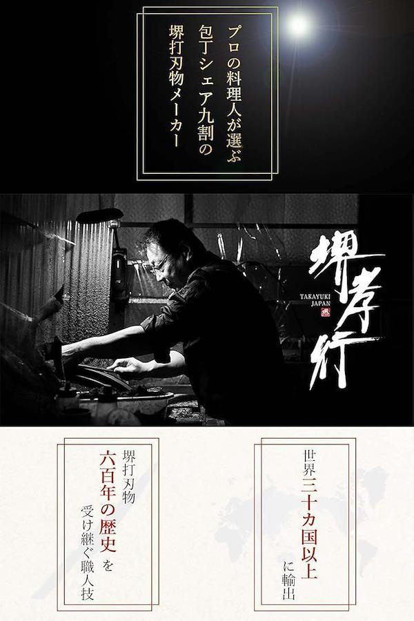 プロの料理人が使う包丁では、90%以上ものシェアを誇るとも言われる堺打刃物の高級品です。