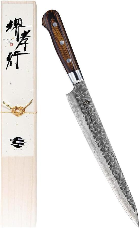 「堺孝行ブランド」堺打刃物を代表する「堺孝行」ブランドの包丁で、美しい槌目ダマスカス模様に仕上げられた逸品です。