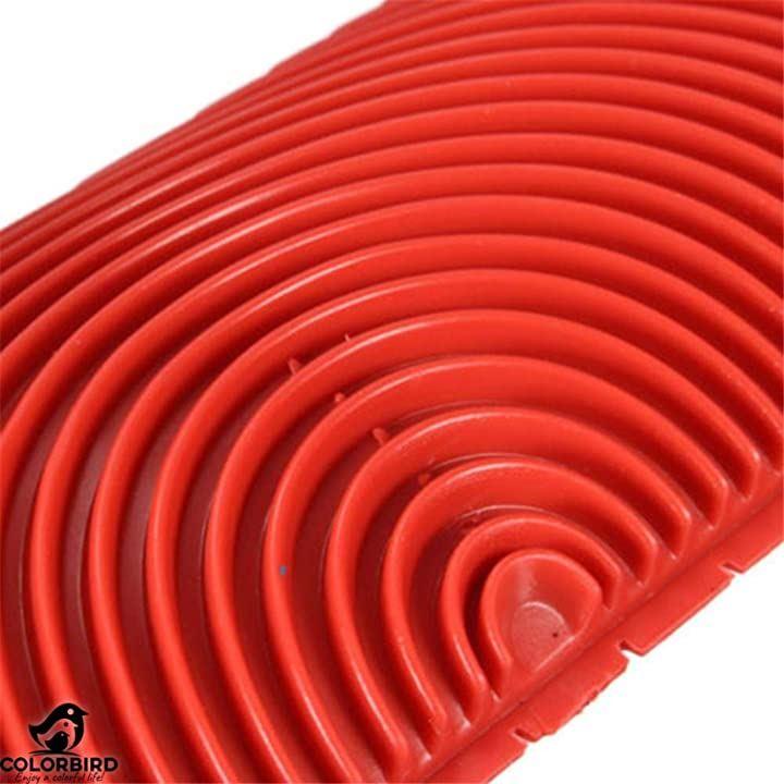 ・下塗り塗料を乾燥させたあと、上塗り塗料を塗り乾燥しないうちにハンドグリップの溝の部分を塗面に当てて、波打つように手を動かしていきます。