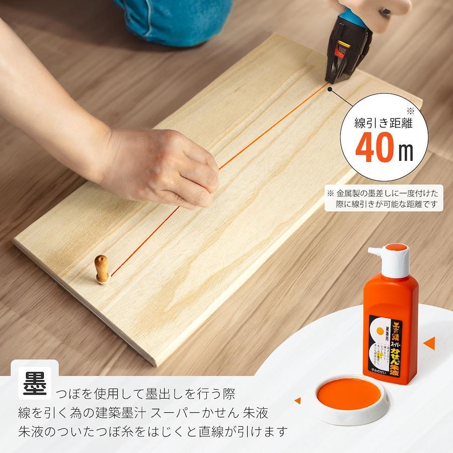 用途:建築用朱液, 容量:180ml, 注意:綿と糸を取り替えると100%この製品の特長を発揮します。