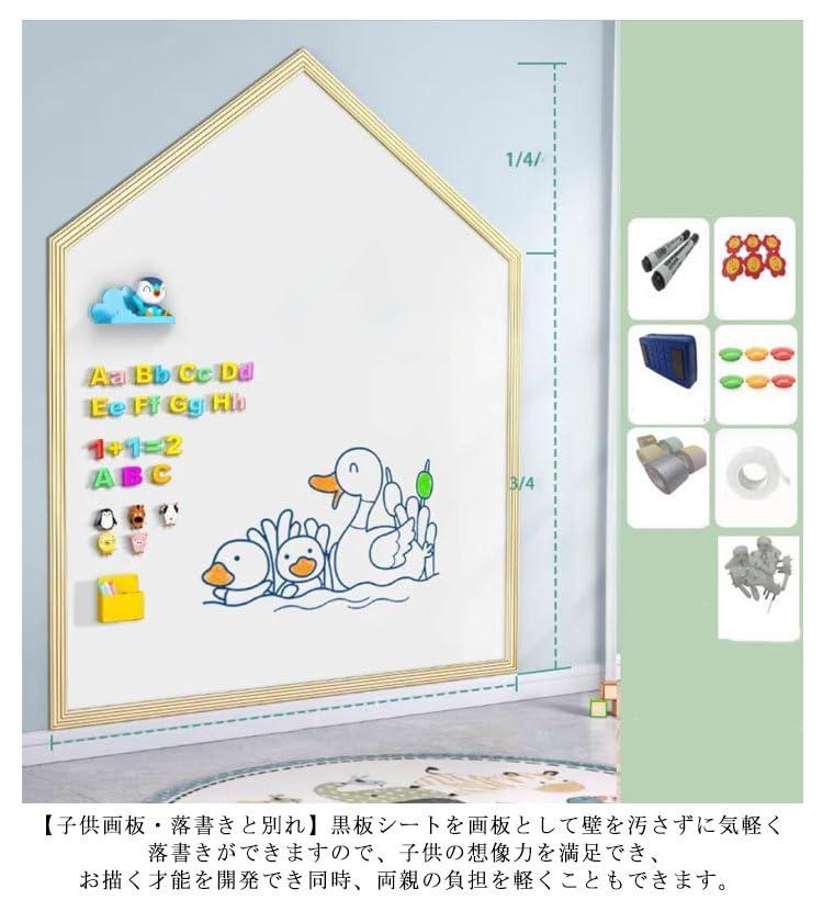 剥がす場合は、両面テープを壁から隅からゆっくりと剥がし、速すぎずに少しずつ開けていく。 【子供画板・落書きと別れ】黒板シートを画板として壁を汚さずに気軽く落書きができますので、子供の想像力を満足でき、お描く才能を開発でき同時、両親の負担を軽くこともできます。 【用途広い】家では子供の落書き・勉強・飾り、会社ではプレゼン・映写用・スケジュール表、商店では掲示板・メニューボードとして使え、幅広い場面で大活躍です。 【貼り付け簡単・消しやすい】シール製で直接に貼ることができ、初心者でもできます。黒板シートの表面には撥水加工が施されているので、濡れタオルやイレーザなどを使ってきれいに拭き消して、繰リ返し使うこともできます。 剥がす場合は、両面テープを壁から隅からゆっくりと剥がし、速すぎずに少しずつ開けていく。