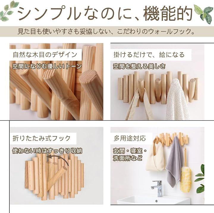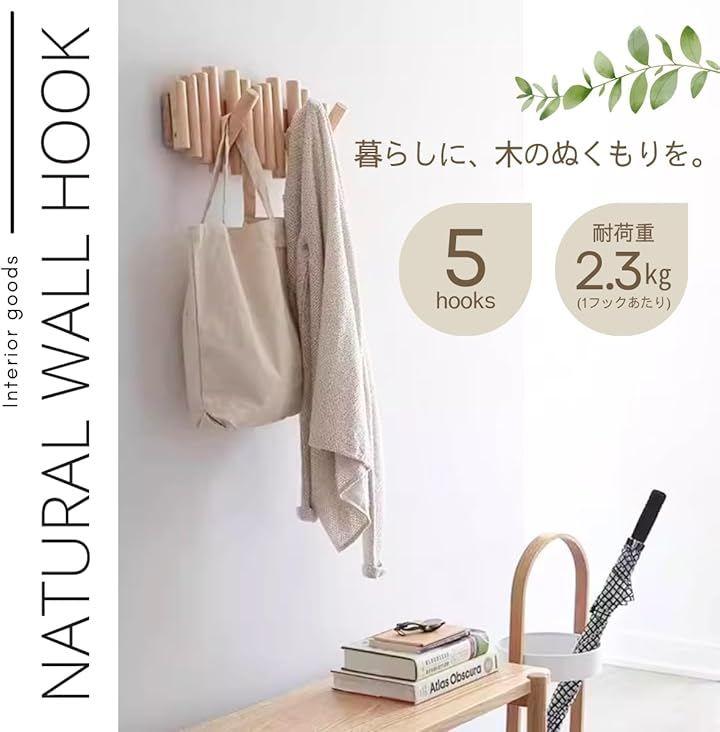 「5つの折りたたみ式フックで整理上手に」 5つのフックを備えた実用的なデザインで、コートやバッグ、帽子、マフラー、小物などをまとめてすっきり収納できます。
