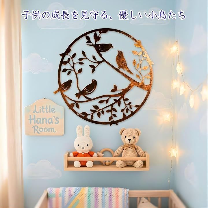 木の枝で羽休めをする愛らしい小鳥モチーフが、お部屋に北欧風の穏やかな癒やしをもたらします。