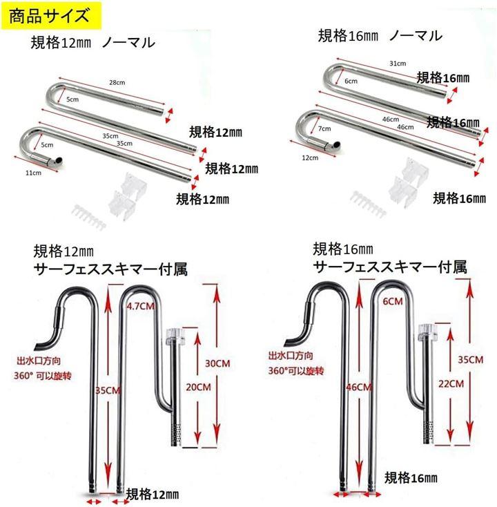 「 サーフェース スキマー 商品セット内容」:ステンレス 給水パイプ / 排水パイプ / 取付用部品(プラスチック製)サイズは規格 12mm 16mmの2種類