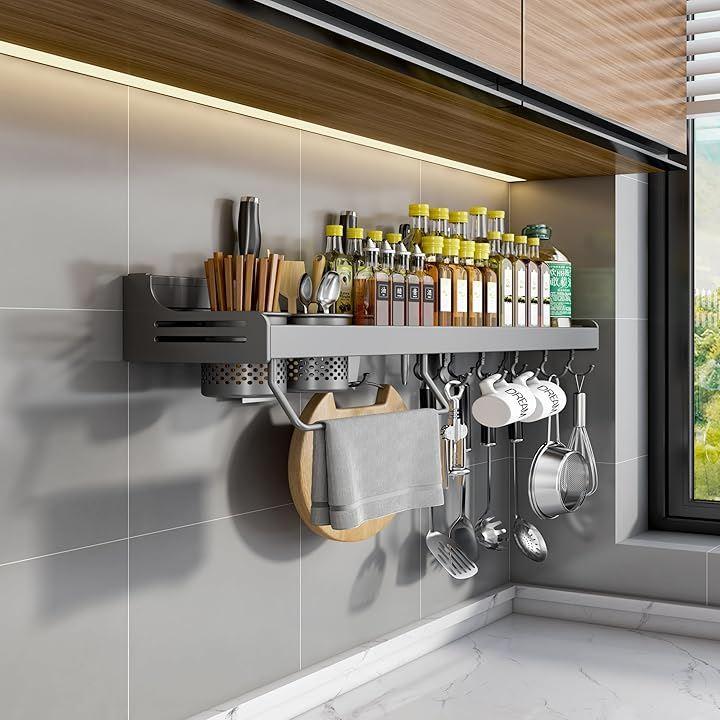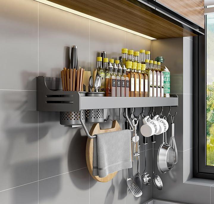 多機能キッチン収納ラック:この壁掛けタイプの調味料入れは、調味料、菜刀、箸など、様々なキッチンツールをコンパクトに整理できる優れた収納ソリューションです。