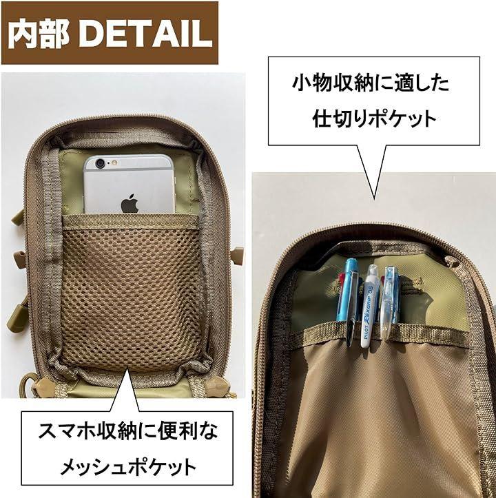 約200gの軽さで、収納ポケットには、スマホ・イヤホンなど小物類を整理して持ち運び可能です