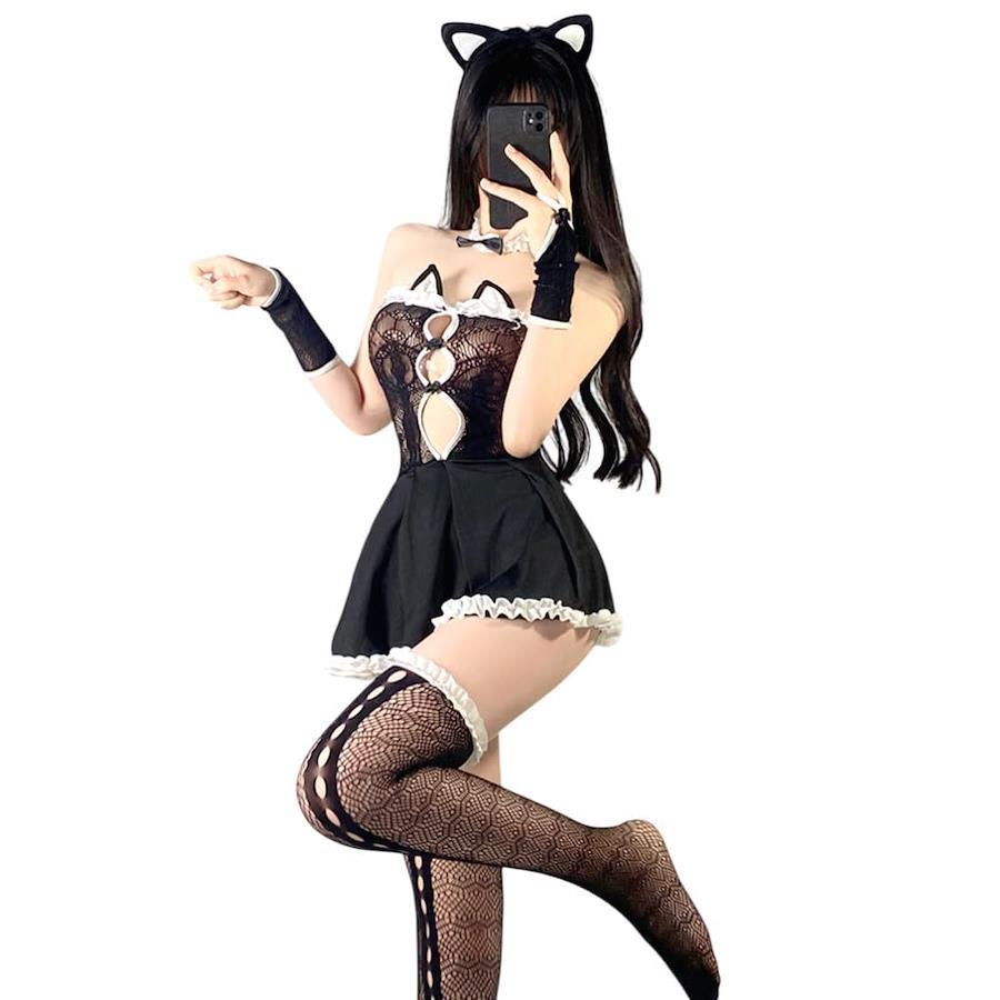 【商品内容】猫耳カチューシャ+首飾り+ワンピース+手袋+網タイツ【素材;ポリエステル】伸縮性があり柔らかい生地が体にぴったりとフィットし、エレガントで肌にやさしく、快適で柔らかく、滑らかな手触りで変形やしわになりにく丈夫で耐摩耗性があります。【サイズ】フリーサイズ(目安サイズ:S-XL、身長:140-165cm、体重:40~60Kg以内適当)【彼の専属ペット】キュートで可愛い大人気の猫のメイド服!あなただけの猫ちゃんになります!猫耳カチューシャをつけて可愛さ満点!ワンピースにも猫耳のデザインが入ってありとてもおしゃれです。手袋に蝶結びが点在していて可愛らしさを演出し、猫様メイドのランジェリーを身に着け、ご主人様だけの猫ちゃんになります!【にゃんにゃんタイム】恋人や意中の人と夜に.. バレンタインデー、ブライダルシャワー、パーティー、ナイトクラブ、バー、仮装パーティーなどにも幅広くご利用いただけます。 彼女、妻にプレゼントとしても喜ばれます。【厳密梱包】 弊店は常にお客様のプライバシーを最優先しています。商品は2重包装なので中身が見えないようにしてお届けいたします。(#lf)(#lf)(#lf)商品購入前に、ストア紹介ページをご確認ください。
