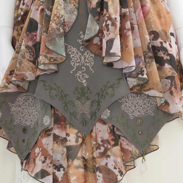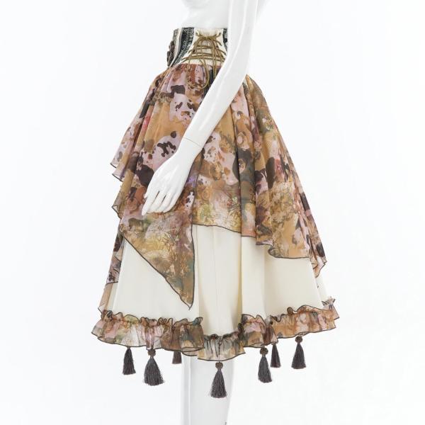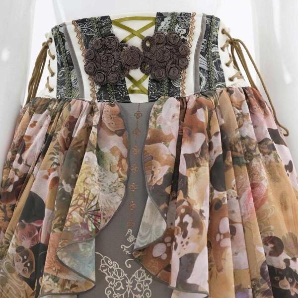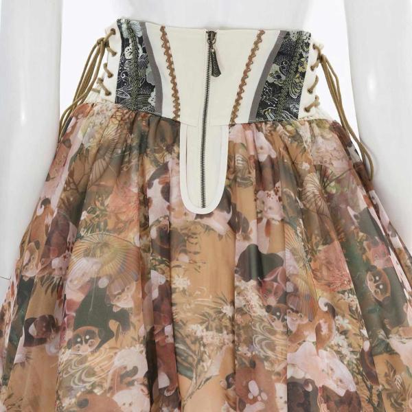 ベースには和の絵巻を夢の中で見ているような総柄プリントをのせ、奥行きのある表情に。