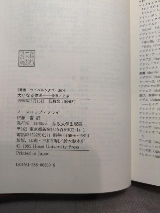A01-251021002002015-000大いなる体系: 聖書と文学 (叢書・ウニベルシタス 500) 法政大学出版局 ノースロップ フライ