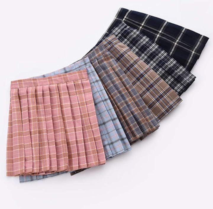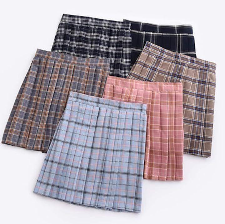 大きめサイズで安心。定番のチェック柄プリーツスカート。。