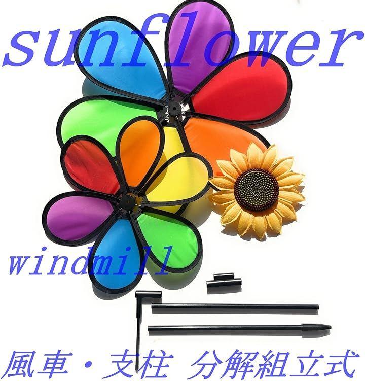 「組み立て式」羽根2種類 & ひまわり & 支柱部品・・ を組み立てるキットです *屋外での嵐や台風などの強風の際はご使用をお控えください