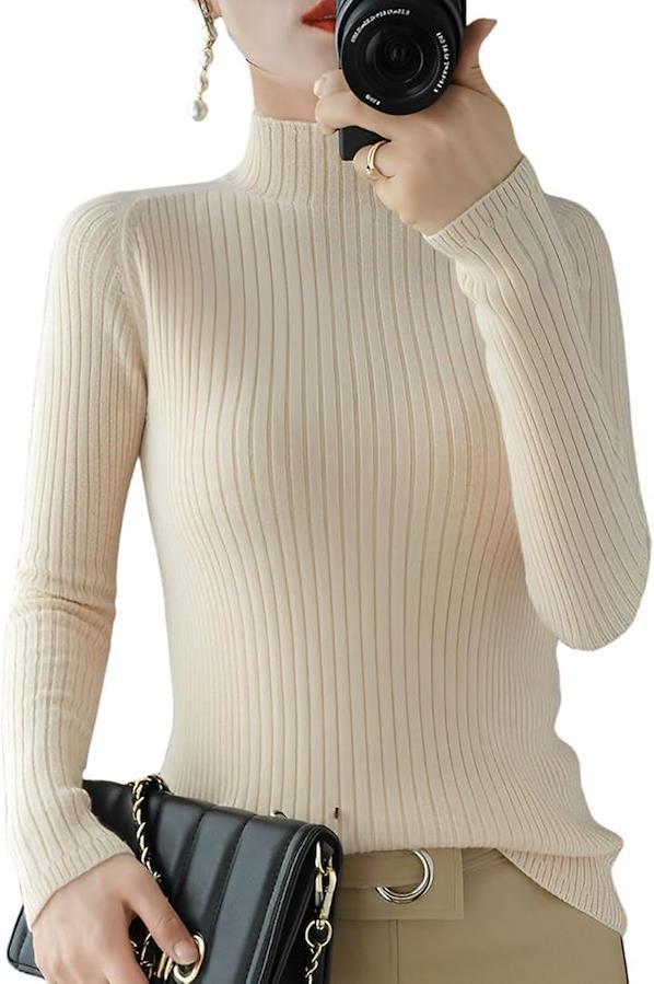 秋冬ファッションにはかかせないシンプルハイネックリブニット 折り返しのないボトルネックデザインで首周りをスッキリと見せてくれます コンパクトなシルエットで、フィット感がありボディラインをキレイ見せしてくれます 程よくストレッチが効いているので着心地も良く、レイヤードコーデにもオススメです。