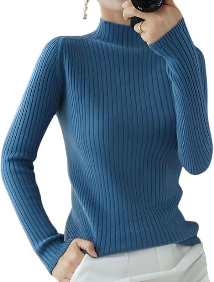 Adult ribbed knit sweater top with a boat neck, turtleneck, high neck, and long sleeves.
