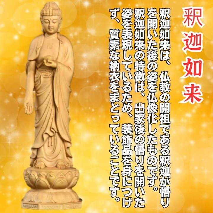 釈迦如来は、仏教の開祖である釈迦が悟りを開いた後の姿を仏像化したものです。