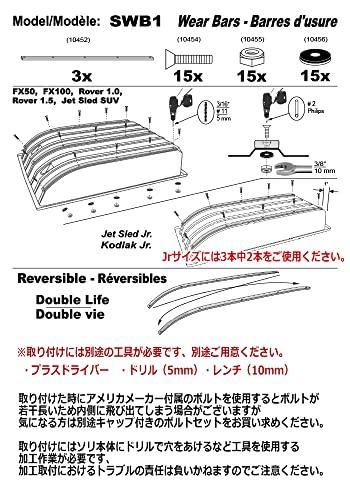 JETSLEDをさらにタフな環境で使用したい方にお勧めのWEAR BARS。 超高密度ポリエチレン樹脂製のバーをソリの底面に取り付ける事でコンクリート、アスファルト、砂地、荒れた雪面などで使用した場合の耐久性が向上しソリ本体を長持ちさせる事が出来ます。 サイズ:長さ99cm×幅2.5cm ※多少の誤差はご了承下さい 3本セット JETSLED Jrサイズには両端に2本、SUVサイズには中央と両端に3本ビス止めして取り付けます。 ※今期モデルは色がグリーンからブルーへ変更になりました。※ ※付属品 :取付用ビス、ナット、ワッシャー ※工具は付属しません。 Jet Sled Wear Bar Kit (Jrサイズ・SUVサイズ対応) サイズ:長さ99㎝×幅2.5㎝ ※多少の誤差はご了承下さい ※付属品 取付用ビス、ナット、ワッシャー 注)ソリ本体、工具は付属しません。 ※カラー 青(グリーンからブルーに変更になりました) Jr、1、SUVサイズのウェアバー各サイズあります。専用のけん引用ヒッチとカバーも取り扱い中! ※こちらはウェアバーのみの販売で、ソリ本体は別売りです。