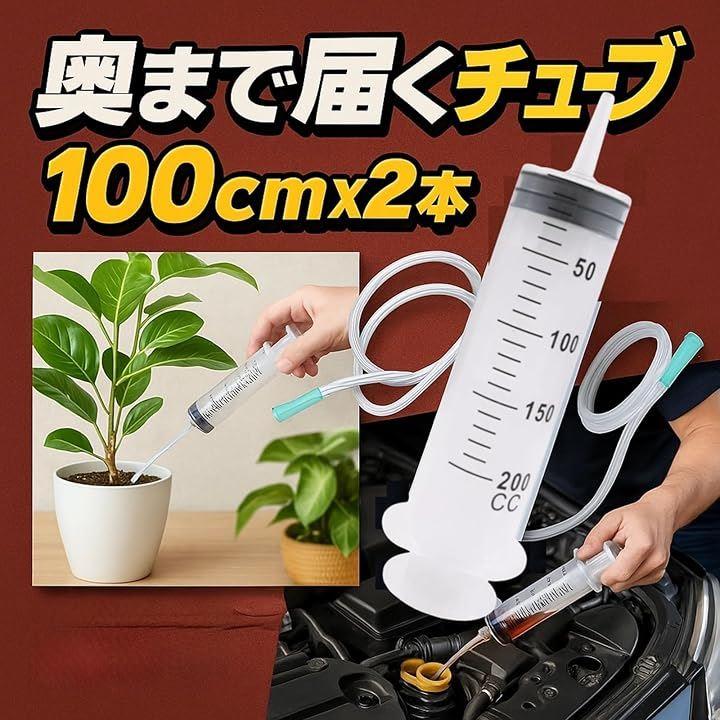 Large-Capacity Syringe with Tube, 100cm x 2, DIY Gardening, Small Animal Feeding, Oil Injection, Liquid Suction, Injector, Maintenance, Measuring Graduations, Individually Wrapped