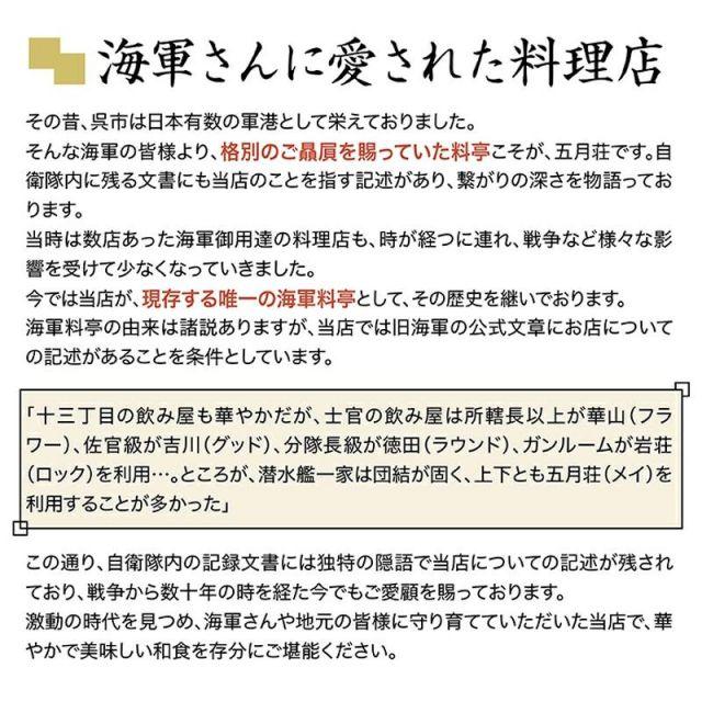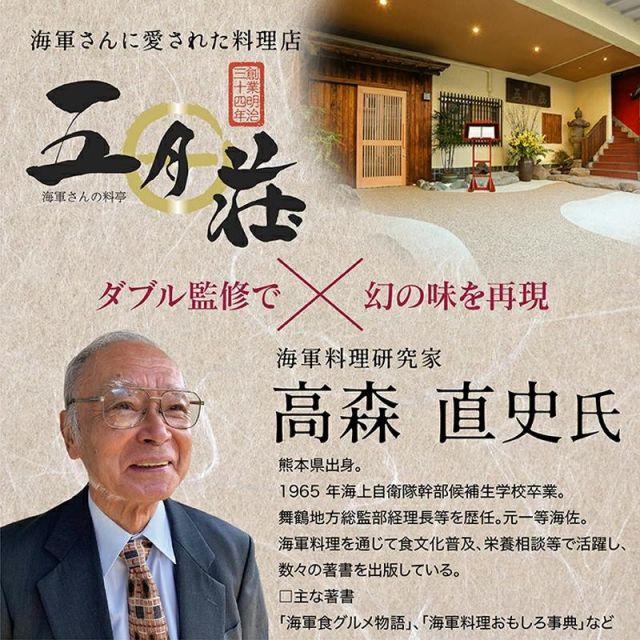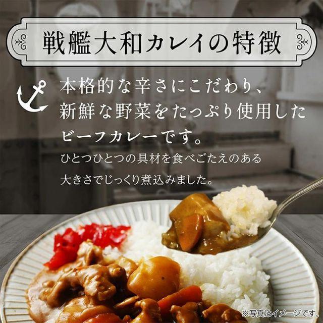 商品名:大日本帝国 カレー レトルト 【 まぼろしの戦艦大和カレイ 】 非常食 詰め合わせ お取り寄せ 呉市 レトルトカレー ご当地 ビーフカレー 五月荘海軍カレーの礎となった【戦艦大和カレイ】をご賞味あれ。海軍のカレー(カレイ)との出会いは明治中期で、築地や銀座などの西洋料理店を経て兵員の人気メニューとなりました。戦艦大和では、海軍経理学校で学んだ主計員が、カレー粉にさらに数種に香辛料をブレンドして、独自のルウを工夫し「戦艦大和のカレイライス」を作っていました。本品は、当時の証言や資料をもとに、いまでは「まぼろし」となった戦艦大和のカレイを追い求めて、海軍さんに愛された料理店「五月荘」が復刻しました。色や香味、具の切り方も証言に沿っています。幻の味をお楽しみください。内容量:180g(1人前)原材料:野菜(玉ねぎ(国産)、じゃがいも、にんじん)、牛肉、カレーフレーク(食用油脂、小麦粉、砂糖、食塩、カレー粉、その他)、食用なたね油、でん粉、フルーツチャツネ、ガラムマサラ/調味料(アミノ酸等)、カラメル色素、酸味料、乳化剤、香辛料抽出物、(一部に牛肉・小麦・豚肉・大豆・やまいも・乳成分・鶏肉を含む)