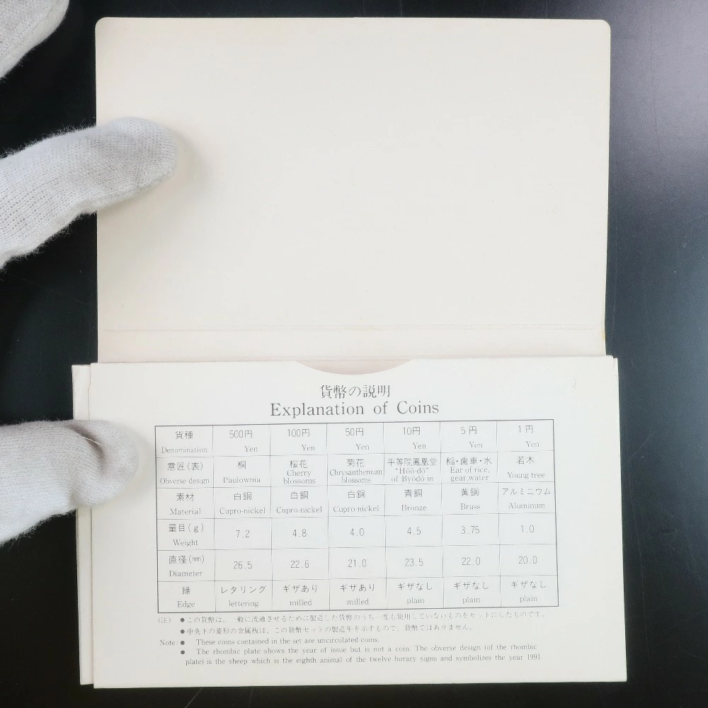 | 商品説明 | ◆「貨幣セット ミントセット」1991年 平成3年製造のものです。 ・500円100円50円10円5円1円と年銘板干支のセット×6セットになっております。 【状態】 ・コレクション未使用品。 ・ケースは未開封ですが、貨幣に若干のクスミが見受けられます。 ・ケースは保管状態による小傷や劣化があります。 ※画像を参照してください。 |