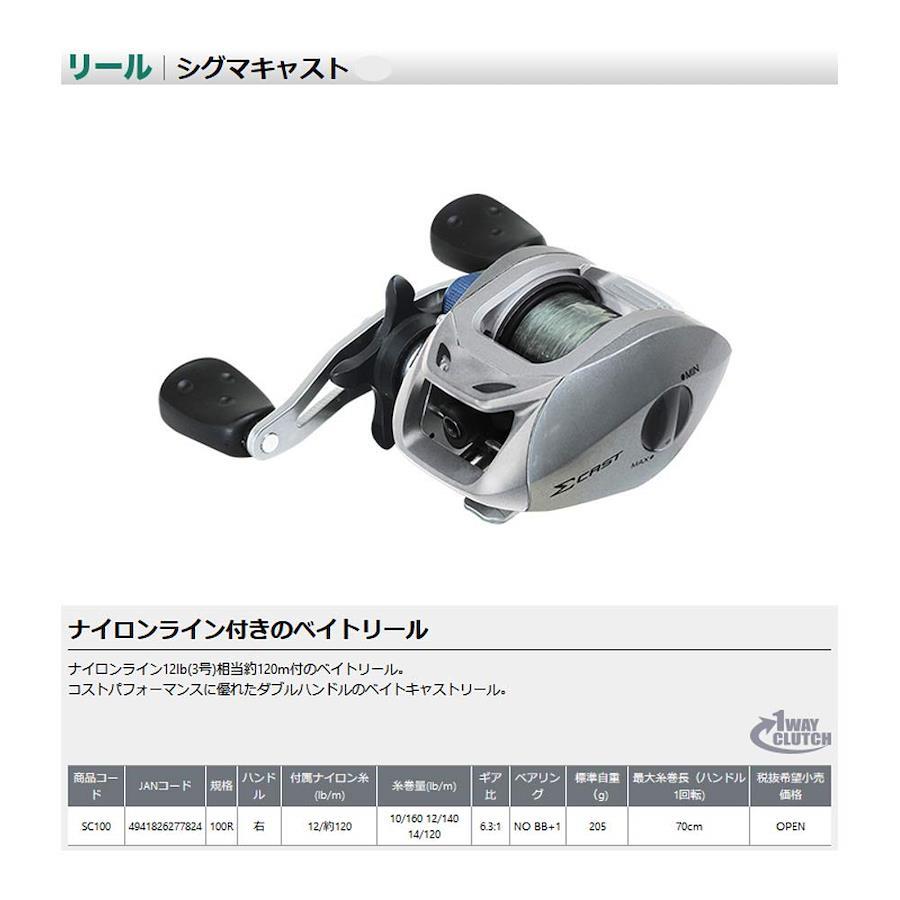 規格:100Rハンドル:右付属ライン:ナイロン糸12LB/約120m糸巻量:10LB/160m,12LB/140m,14LB/120mギア比:6.3:1ベアリング数:0BB+ワンウェイクラッチ標準自重:205g最大糸巻長:ハンドル1回転70cm