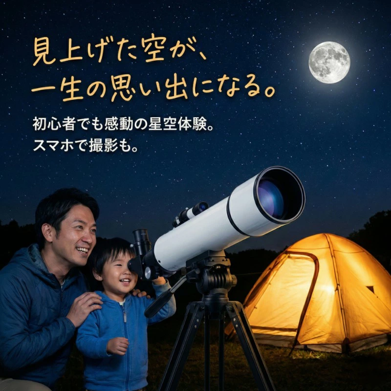 ・スマホ撮影用アダプター(ホルダー)付きで、見えた星や月をそのまま撮影可能