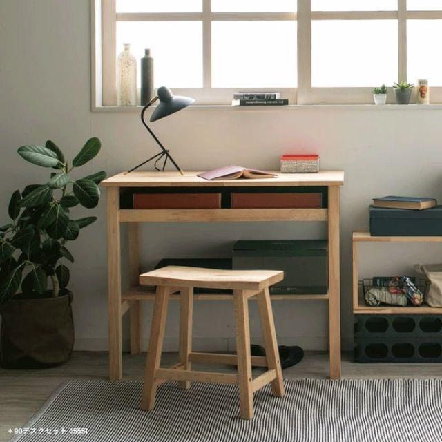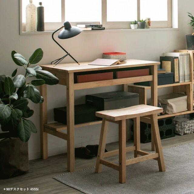 天然木をふんだんに使ったシンプルなデスク&スツール