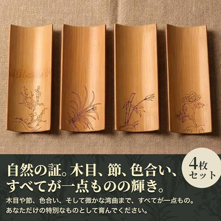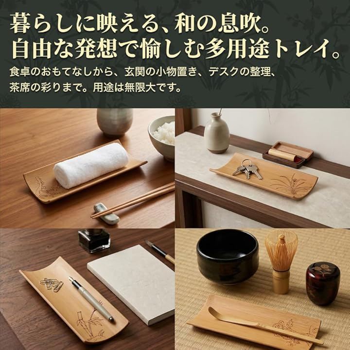 天然竹と四君子の手彫り文様が織りなす、上質なおもてなしトレイ。