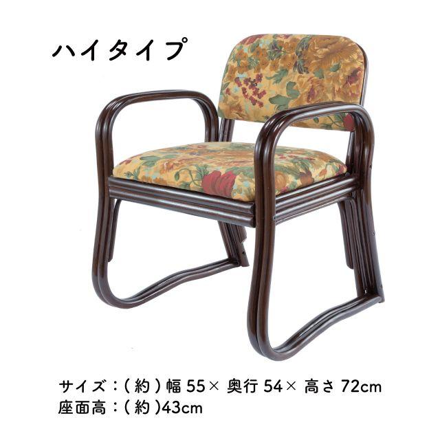 【ハイタイプ】サイズ:(約)幅55×奥行54×高さ72cm座面高:(約)43cm座面:(約)幅45×奥行39.5cm背もたれクッション高さ:(約)25cm肘の高さ:(約)57cm重さ:(約)5.4kg耐荷重量:(約)80kg