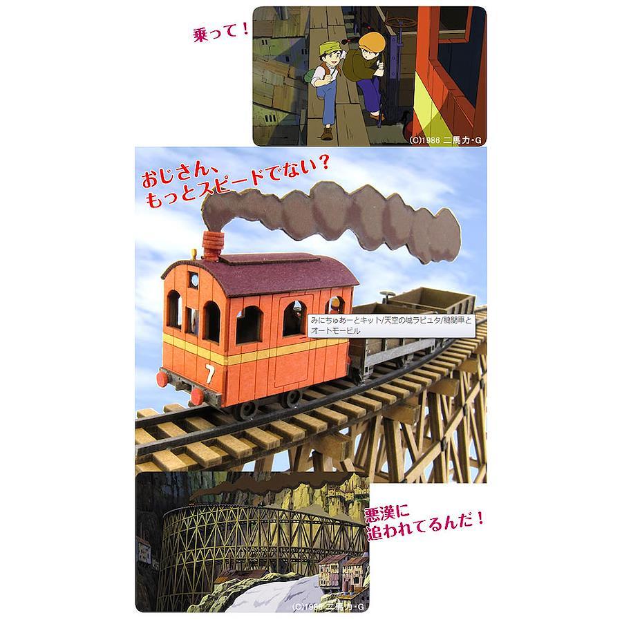 みにちゅあーとキットセット内容:レーザーシートA〜O (15枚)、人物シート(1枚)、印刷シート(1枚)、組み立て説明書完成時サイズ:W180×D40×H120mm対象年齢:12才以上組み立て所要時間:約7時間企画:スタジオジブリ・株式会社さんけい映画「天空の城ラピュタ」より【機関車とオートモービル】