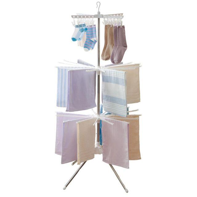 スタイル:04_パラソルスタンド◆商品名:天馬フェイスタオルが32枚、靴下が12足干せるスタンド型室内物干し洗濯物干し組立式室内用スタンド物干しパラソル型3段衣類ホワイト幅82×奥行82×高さ169cmPS-10K