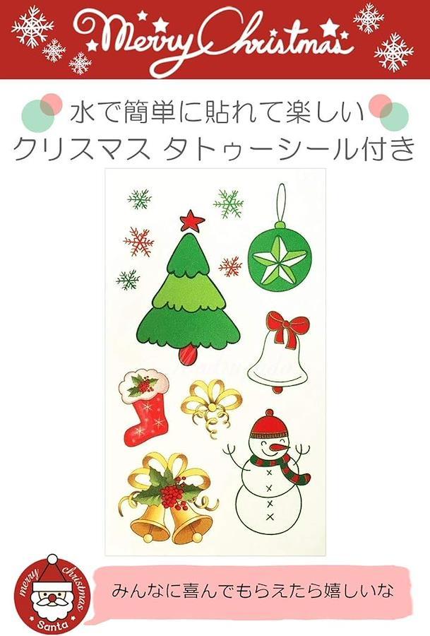 かわいい絵柄を集めたクリスマス用のタトゥーシール付き。