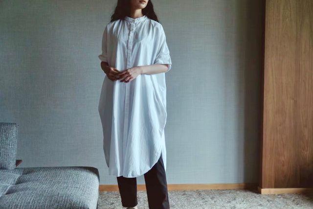 安心安全の上質な日本製。着心地にこだわったワンピースとパンツのセットワンピースシャツはクラッシュワッシャー生地を使用することで、風合いを柔らかく仕上げおります。優しい丸みのあるシルエットを表現したふわりと揺れる美しいデザインでボトムスとのコーディネートもバランスよく決まります。別添えの紐を腰部分につければ、違った雰囲気でのワンピースに。前ボタンをオープンして重ね着しても素敵なワンピースです。肌に馴染みやすく着心地の良さを体感していただけます。程よいデザイン性のシワ感で、アイロンしなくてもOK。お腹周りを気にされる方でも気持ちよく着用いただけます。