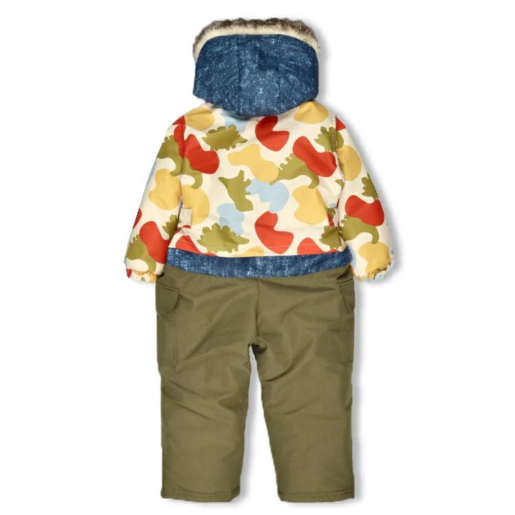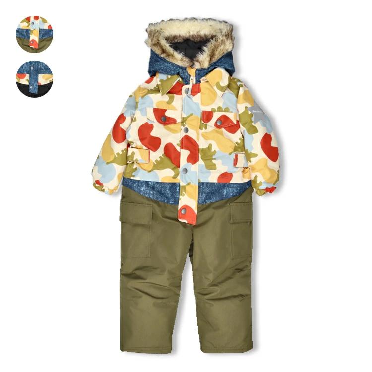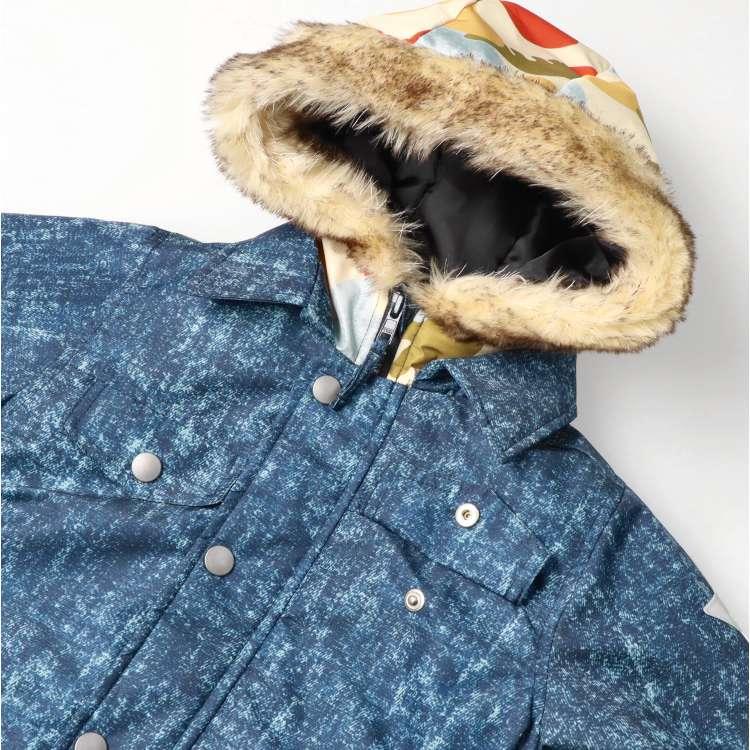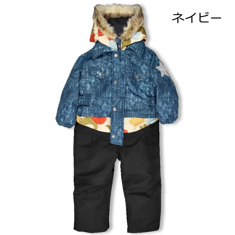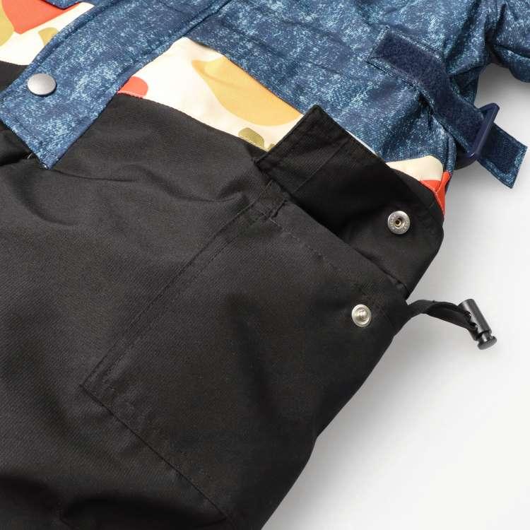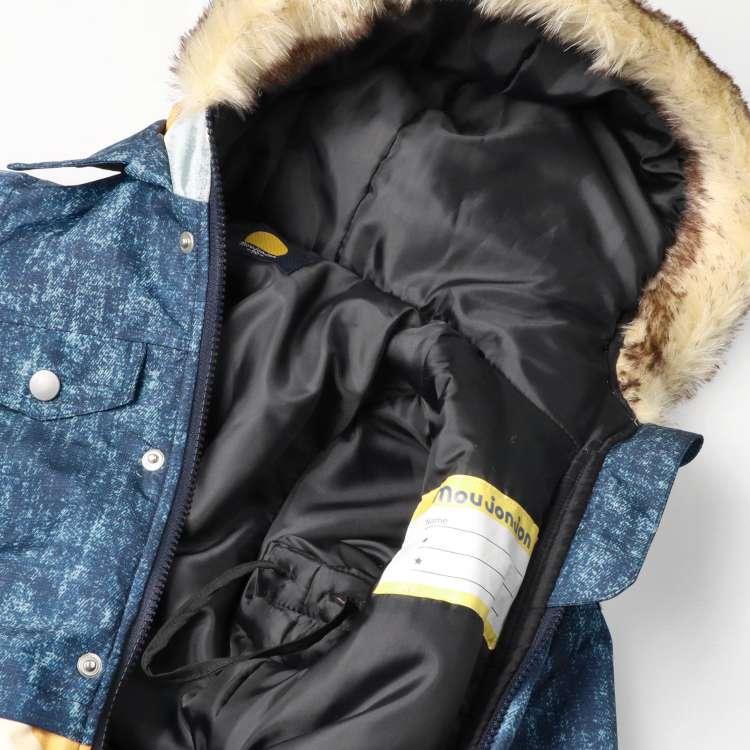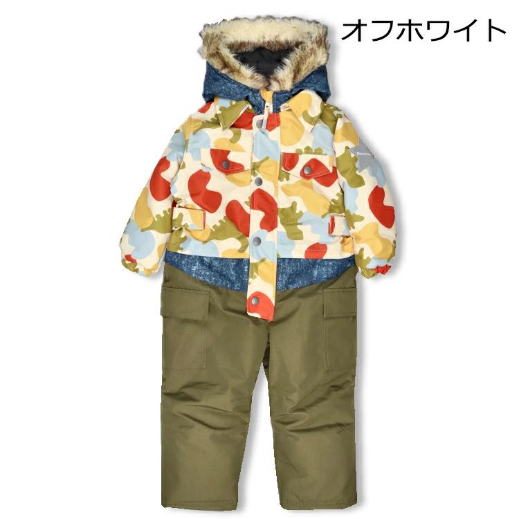 スノーコンビ・ジャンプスーツ・スキーウェアタイプのつなぎ!雪遊びやお外遊びにも!!足部分は二重構造になっているので、ナイロン部分を中に入れてスノーブーツを履いて、スノーブーツの上から被せると足元から雪が入りにくい!ポケットの中のひも、脇部分のひもを調節する事で、手足部分の長さ調節も可能です。お洋服の上から着ることを考えて作られており、大き目の作りなので、ジャストサイズをオススメします。通園、通学の際にもぴったり☆フードはボタンで取り外し可能です!首元衿内側部分はフリース素材で首元も暖か♪表は耐水圧2000mmの防水加工です!(完全防水ではありません。撥水スプレーとの併用がオススメです。)同柄で脚絆、足カバー(M53882)やスノーグローブ、手袋(M53880)もあるので、更なる防寒も可能です!オフホワイトは恐竜シルエットと無地の切替、ネイビーはデニム風プリントと無地パンツの切替デザイン。袖には星のリフレクター付き。【アイテム】 カジュアル お洒落 オシャレ かっこいい かわいい 可愛い 普段着 デイリーウェア お出かけ着 ロングスリーブ 長袖 アウター ブルゾン ジャンパー コート ジップアップ フロントジップ 子ども こども 男児 男の子 ボーイズ キッズ ベビーサイズ トドラーサイズ 幼稚園 保育園 小学校 通園 通学 小学生 2024年秋冬物新作 丸高衣料 切替 雪遊び スキー スノーボード ソリ遊び ムージョンジョン ダイナソー オフホワイト 白色 カーキグリーン 深緑色 ネイビー 紺色 ブラック 黒色