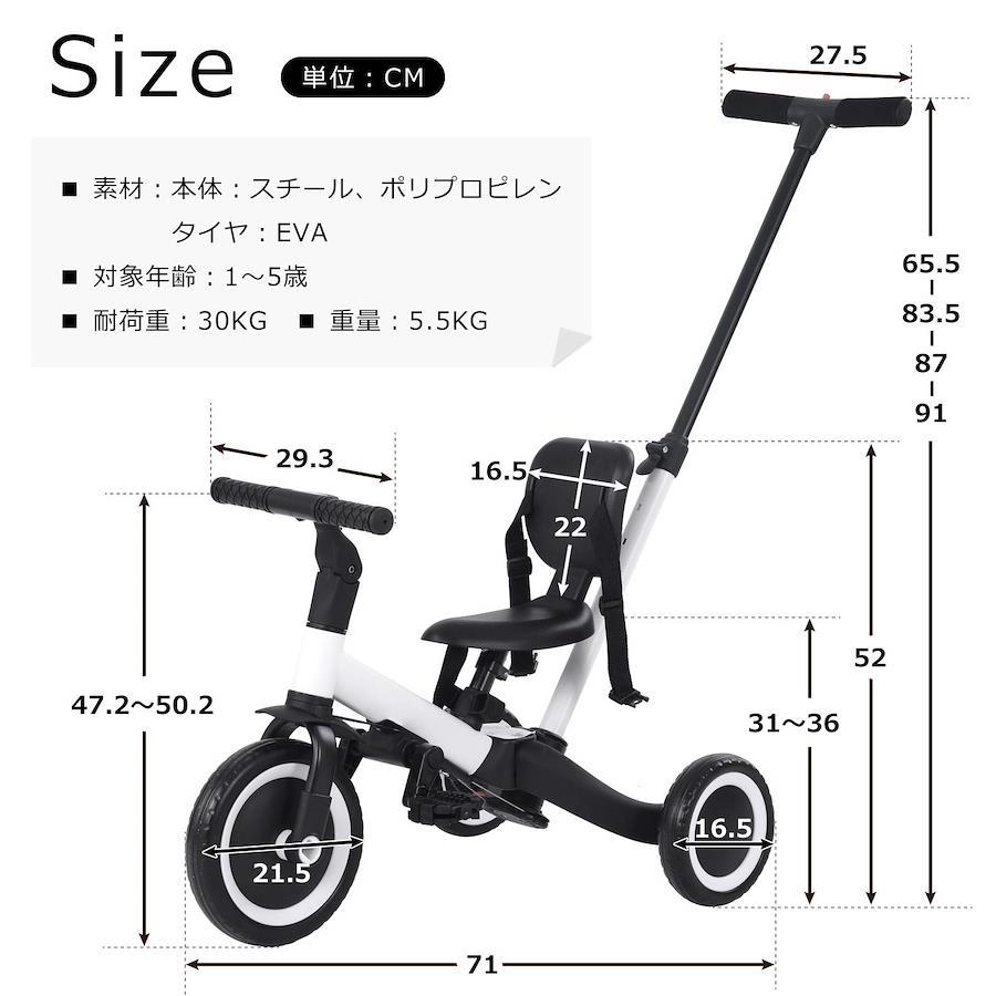★【一台四役】 手押し三輪車モード、三輪車モード、ランニングバイクモード、自転車モード。様々な使い方があり、工具なしで組み合わせできです。お子様の成長に合わせて4階段でご使用いただけます。 ★【高さ調整でき】 お子様の体型に合わせて、サドルとハンドルの高さを調整できます。 ★【コントロールバーは調整でき】 コントロールバーは心地良い素材を使用し、ママの操作をもっと安くなります。それに、コントロールバーの長さは4段階調節できます。 ★【安全ベルト】 赤ちゃんの安全をより効果的な保護できます。 ★【車輪衝撃吸収と滑り止めシステム、安心安全】 空気入れ不要な発泡タイヤを採用しています。室内で使用しても床を傷つけにくいです。平らでない道路の衝撃を軽減し、運転の安定性、快適性、安全性を向上させるだけでなく、赤ちゃんも良く保護されています。 ★【持ち運びに便利】 わずかな重量で、子供でも簡単に持ち上げられます。外出先での持ち運びにも便利です。 ★【品質保証】 【EN71】取得済み!乳幼児向け製品は【EN71】という規定が発行され、対象年齢や使用目的など、様々な角度から玩具の安全性について検査されます。 ★【1年安心保証】 本商品は一年間の長期保証付きです。万が一商品に不具合がある時には、無償交換・返金は可能ですので、お気軽に弊社までご連絡ください。