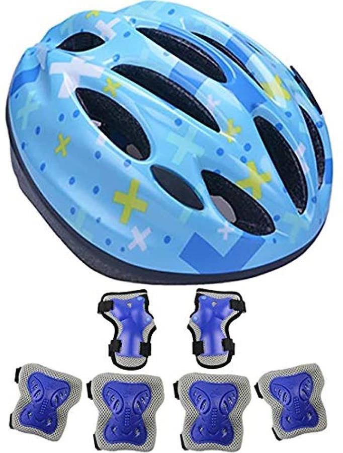 Children's Helmet Bicycle Child Kids Elbow Knee Wrist Protector Set Adjustable Lightweight Toddler Cycling Blue Snowflake M Size